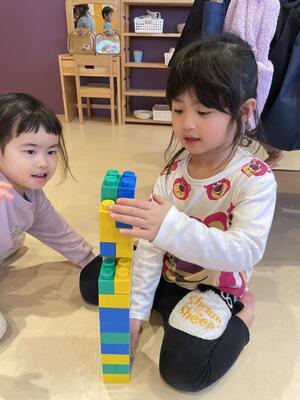ゆき組(3歳児)の時に慣れ親しんだおもちゃやあそびを、お友だちと楽しむ姿が見られていま